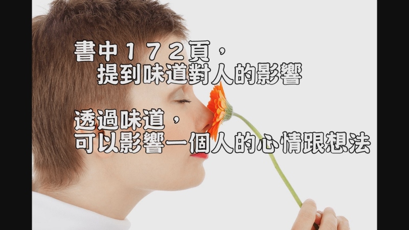 第一個點,在書裡面是第172頁,談到了嗅覺,聞起來的味道,這件事情對於人們的影響。
