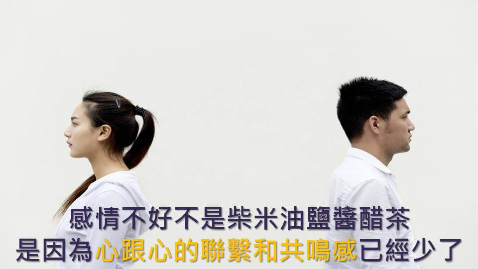 大問題出在哪裡,感情為什麼會不好,不是柴米油鹽醬醋茶,是因為他們的心跟心的聯繫跟共鳴感已經少了