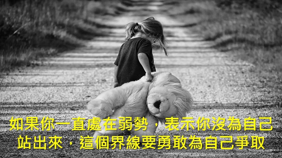 如果你一直處在弱勢,表示你也沒有為自己去做一些站出來的動作,這個界線可能要去能夠勇敢為自己爭取。