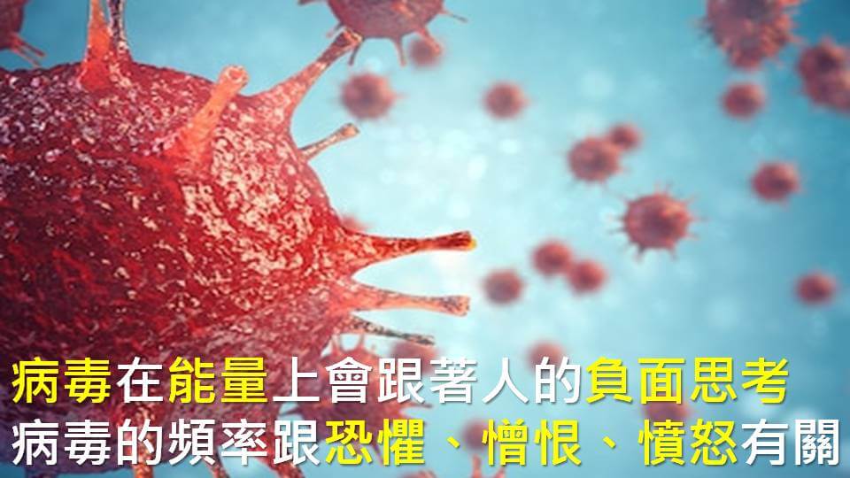 病毒在能量上是跟著人的負面思考的,它的頻率跟恐懼、憎恨、憤怒有關係。