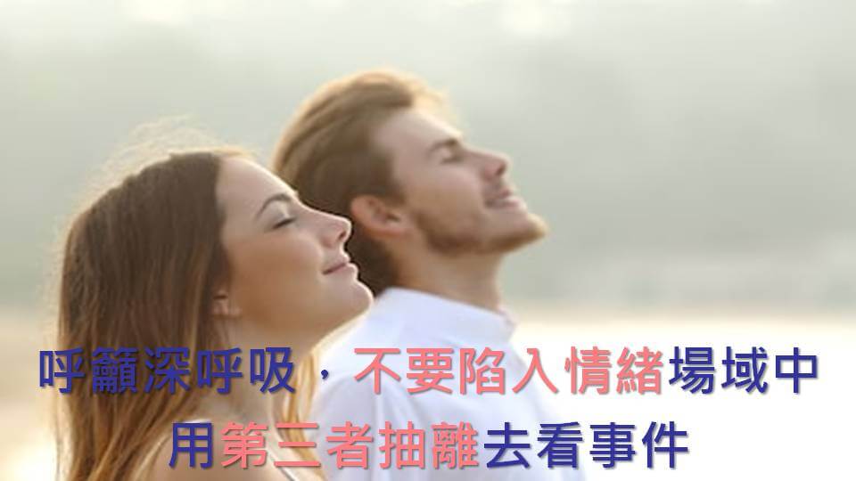 我們真正應該要做的是深深的深呼吸!呼籲深呼吸,不要整個情緒陷入那個場域中,用第三者抽離去看這個事件對你來說比較好。