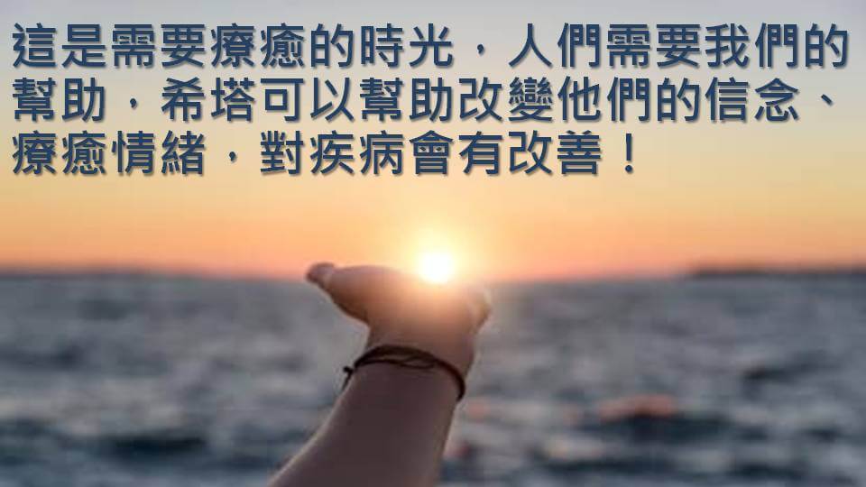 需要療癒的時光,人們需要我們的幫助,希塔真的可以幫助到這些人改變他們的信念,療癒他們的情緒會對這個疾病有改善。