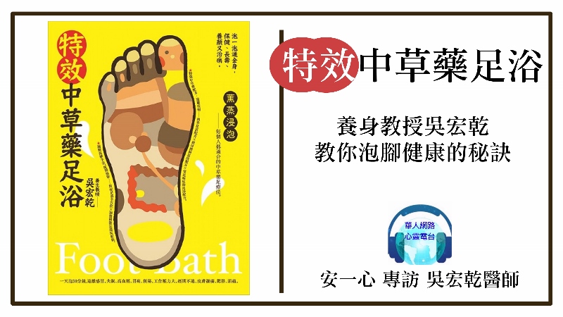 特效中草藥足浴:泡一泡通全身,保健、長壽、養顏又治病,也很開心地邀請到這本書的作者吳宏乾先生來到我們線上,跟聽眾朋友打個招呼吧!