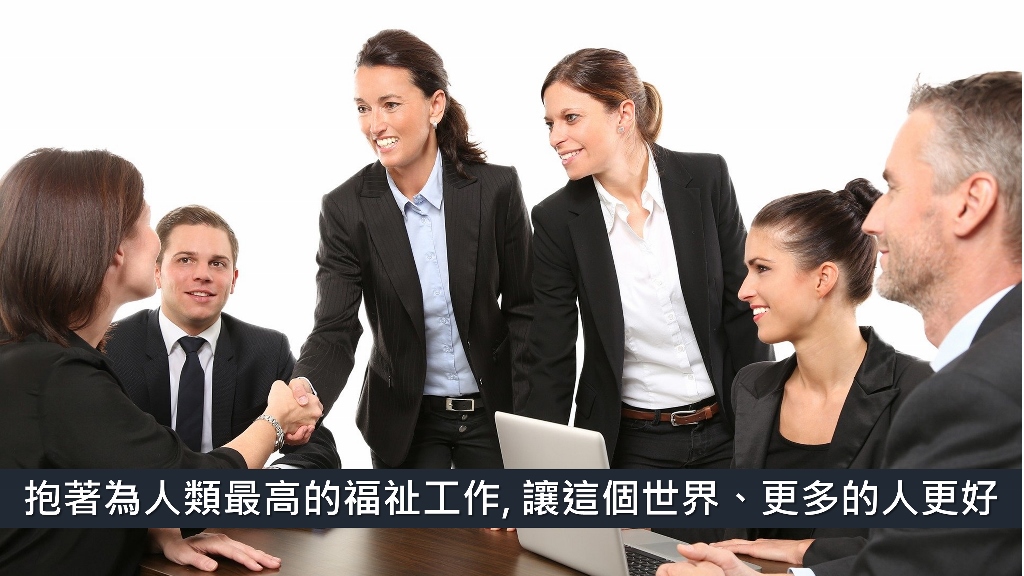 工作時都應抱著為了人類最高的福祉工作, 讓這個世界、更多的人更好