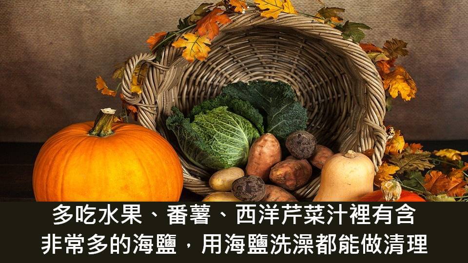 不要想著自己無法清理,只要你願意改變,你就有能力做到,要去做一些滋養大腦的事情,多吃水果、番薯、西洋芹菜汁裡有含非常多的海鹽,甚至是用海鹽洗澡都能做清除。