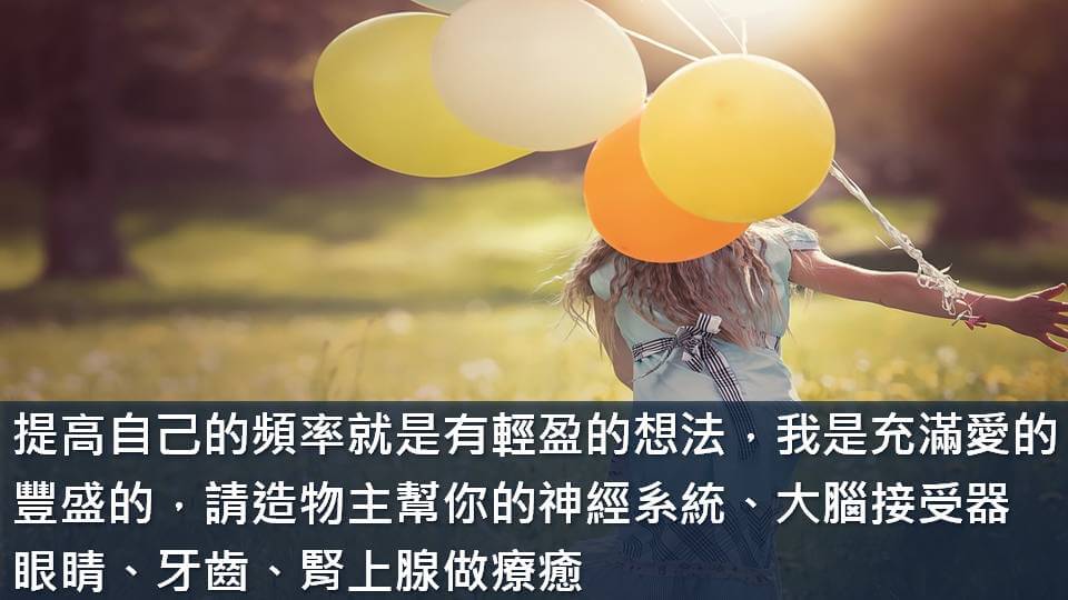 提高自己的頻率就是要有輕盈的想法,即使拿到了希塔證照也一樣,時刻留意自己,去做負能量的清理,保持我是XXX的正面用語,像是我是好看的,我是充滿愛的,我是豐盛的,講一些正面的語詞,如果遇到不好的事情記得用正面的語言去轉化現在的處境,避免責怪,請求造物主幫你的神經系統、大腦接受器做療癒,幫你的眼睛、牙齒、腎上腺做療癒。