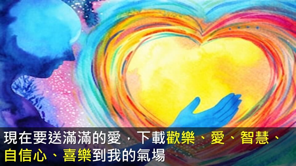 一切萬有的造物主,我們現在要送滿滿的愛,下載歡樂、愛、智慧、自信心、喜樂到我的氣場,把你想要的美德下載到自己的氣場,謝謝,完成了完成了完成了,請顯示。
