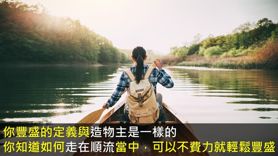 你豐盛的定義與造物主是一樣的,你知道如何走在順流當中,可以不費力就輕鬆豐盛