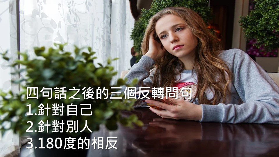 這四句話永遠都是一樣的,提問四句話以後就要做反轉