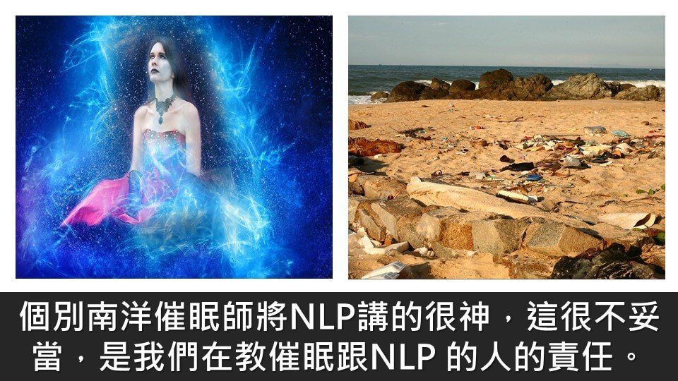 一直到後來我發覺這個市場變得有點特別,有人跟我說,有南洋來的教NLP的催眠師把NLP講的很神,覺得這是個不妥當的一件事,如果市場變這樣這就是我們的責任,我們在教這些催眠跟NLP 的人的責任。