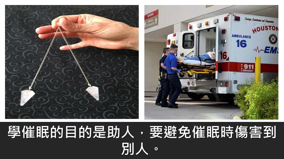 在教催眠治療的時候永遠都先教急救箱的技術,就是這個人做完催眠之後,如果有不舒服或者是引發了一些創傷的經驗,我們怎麼去趕快幫他包紮,不讓來訪者受傷是最重要的一個原則。
