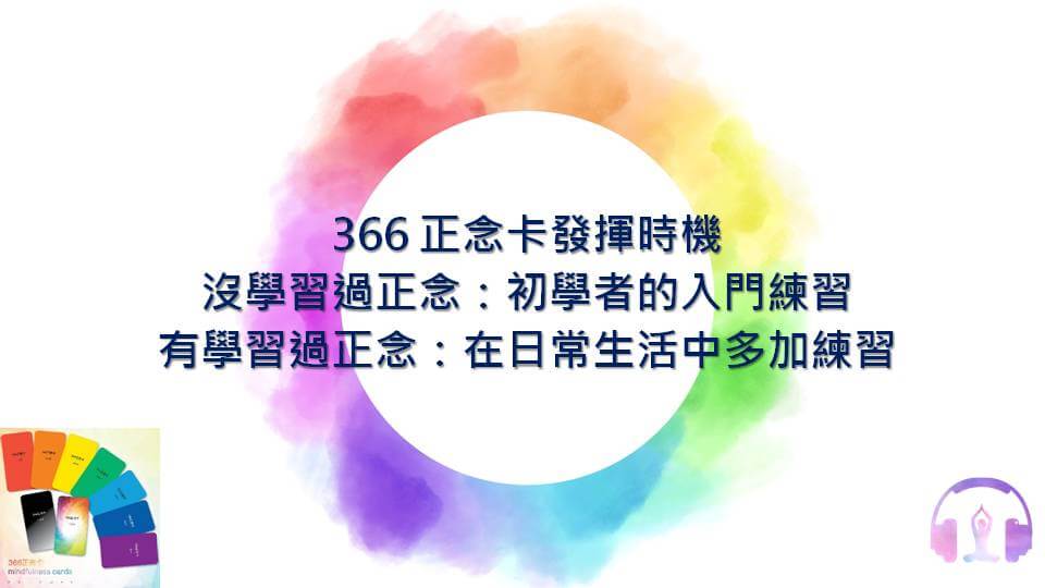 366 正念卡的創作理念,就是為了讓一開始接觸正念而不知該從何著手的初學者們練習的。當然對於已經有學習過正念的朋友們來說,366 正念卡也是增加平日練習的一套好工具。