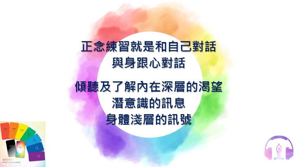 正念練習就是和自己對話、傾聽身心的聲音並讓自己回歸初心、提昇生命的層次來面對生活的每一步。希望各位聽眾朋友能在本集節目訪談中能夠多認識正念,並支持Sangeeta老師這一次的新作品:366 正念卡。