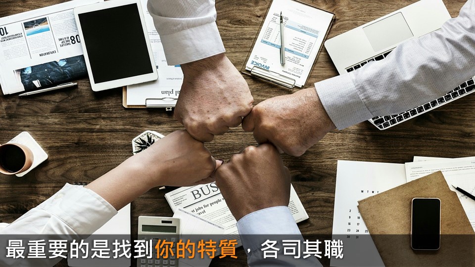 一個團隊裡,每個人都是各司其職,扮演重要的角色,有的人適合當領頭羊,有的適合當傾聽者,有的適合提出方案,有的則是負責去執行。