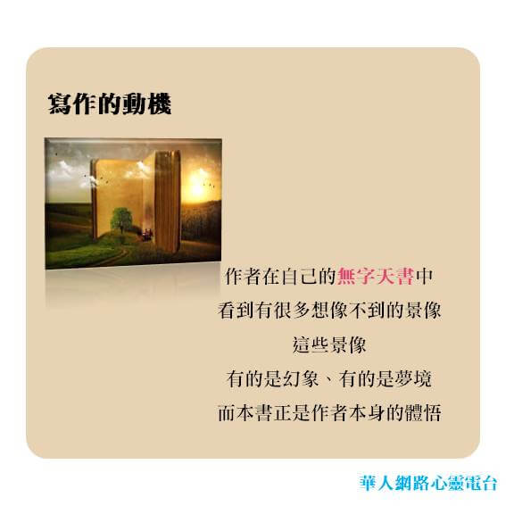 好~ 親愛的朋友又在空中跟大家見面。 今天想跟大家介紹一本[奇書 ],什麼樣的奇書呢? 就是看了以後呢,你會發現你很多的想像,絕對不是你想像的這樣子。
