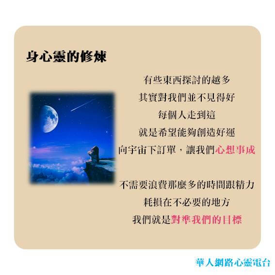 因為你講的這兩個,其實我都是走過的。走過來之後我發現到,其實真正最好的就是…因為我們為什麼要去探索? 就是想要一個好運降臨嘛,要心想事成。
