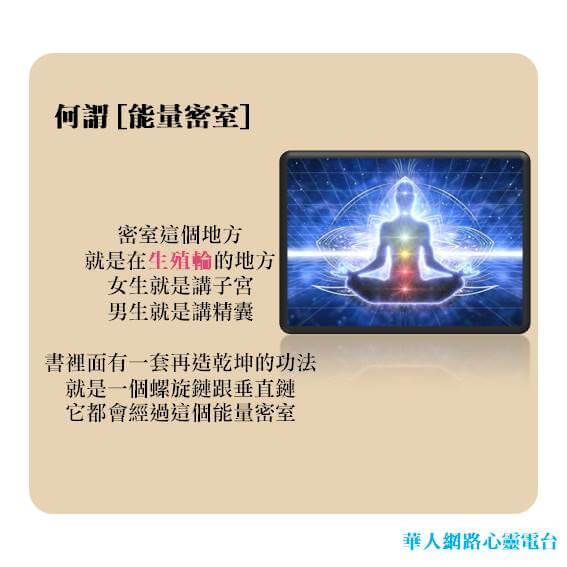 那這個是我覺得是對所有有助於身心靈修練,就是說最大的、最好的幫助,就是在這個地方。因為你只要是把這個能量密室對準松果體的時候,我這個再造乾坤這個功法,它其實…它經過密室、它往上走的時候,一定也會經過膻中。