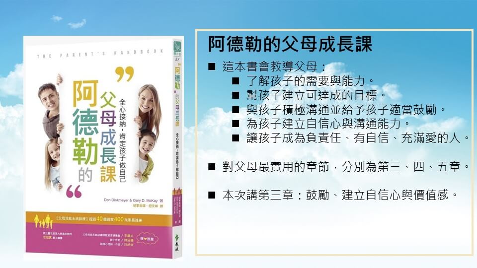 本集將會講解第三章:鼓勵、建立自信心與價值感。