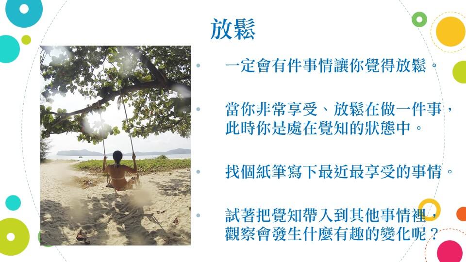 不曉得聽眾朋友聽完後,對於認識自己、放鬆有沒有什麼幫助或感想呢?