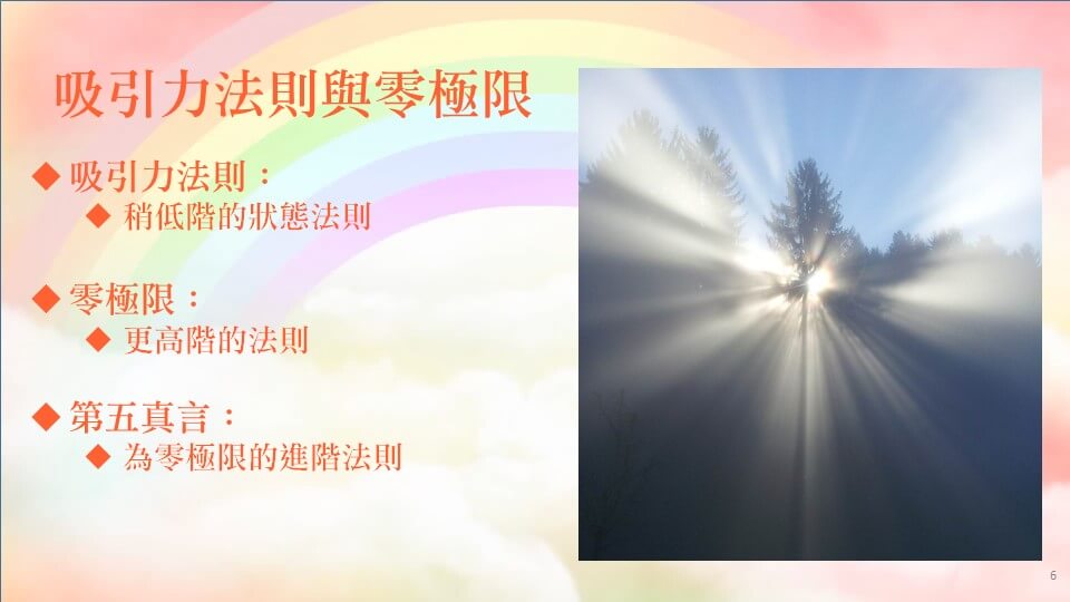 此時,作者開始覺得原來吸引力法則還是很不錯的,可以幫助人,但總覺得吸引力法則還有更進階的,它可能還是屬於比較稍微低階一點的狀態法則,更高的他就找到修‧藍博士所謂的【零極限】。