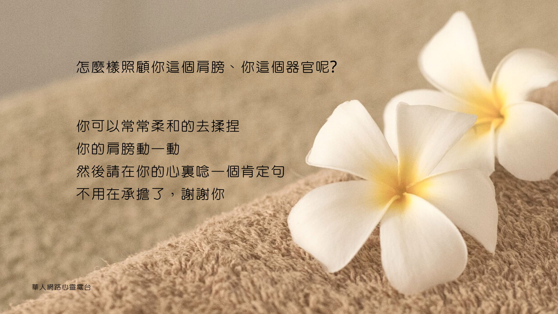 給肩膀一個好好的SPA,也可以跟自己說不要承擔這麼多,