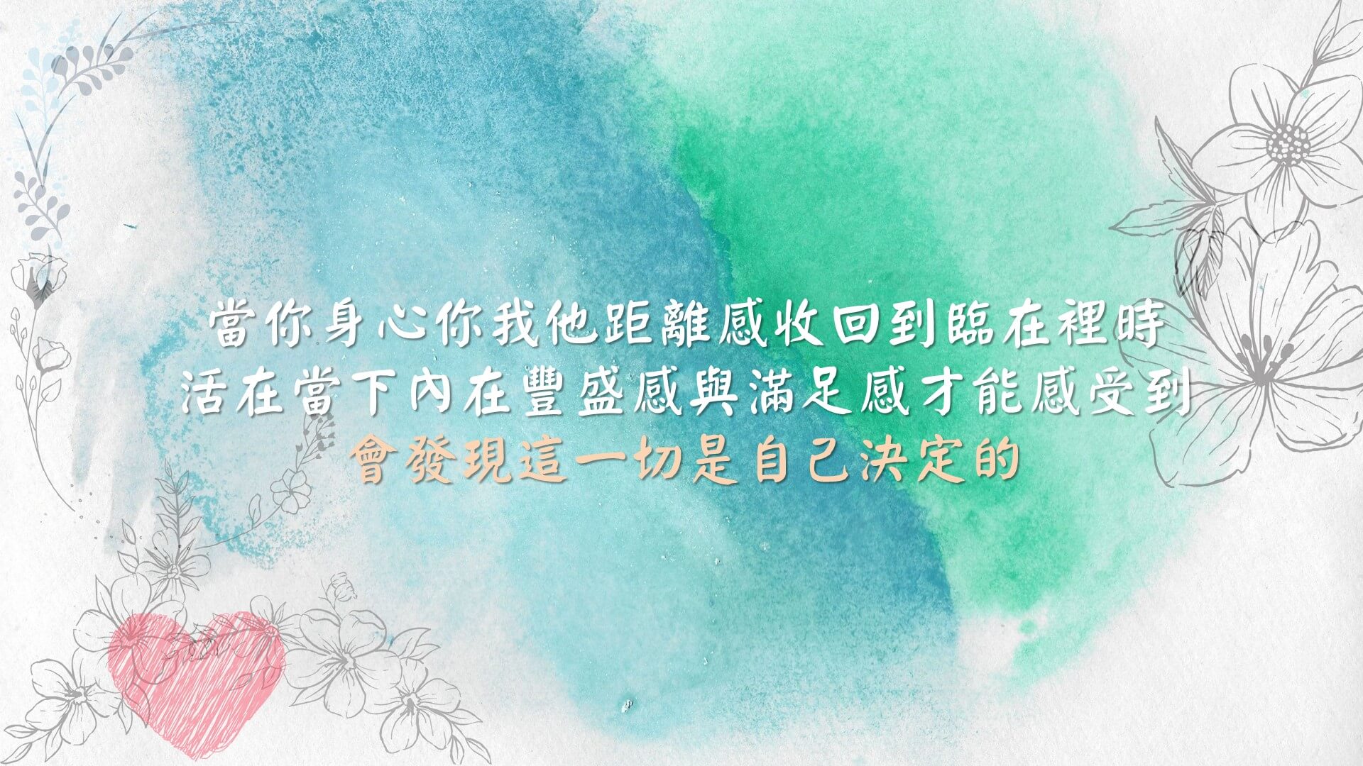 常說靜心冥想是讓你身心你我他距離感收回到臨在裡面,活在當下時內在豐盛感與滿足感才能感受到,