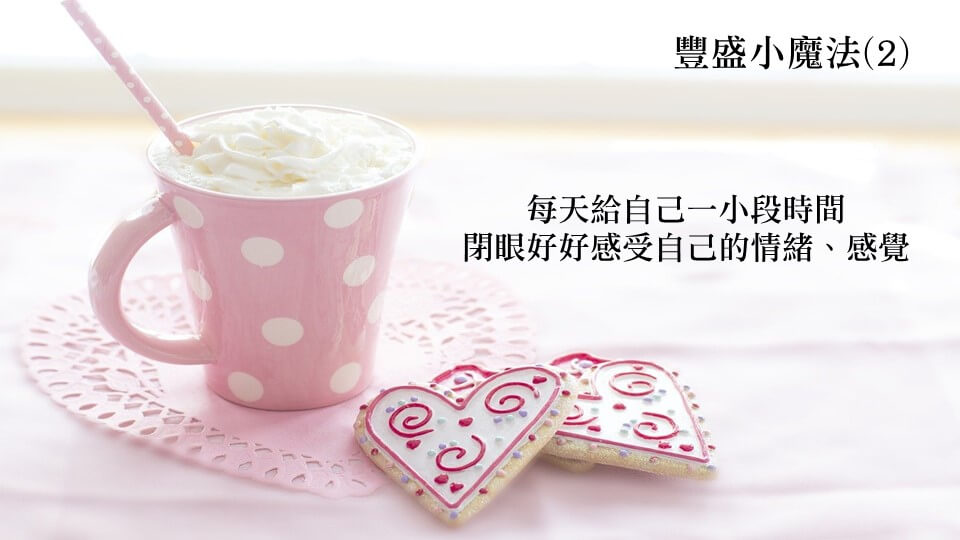 你也可以聽一個很好聽的音樂,然後去感受你今天發生什麼事,你的內心有什麼感覺、有什麼想法,這個都是跟我們的生命去做一個對焦的動作。