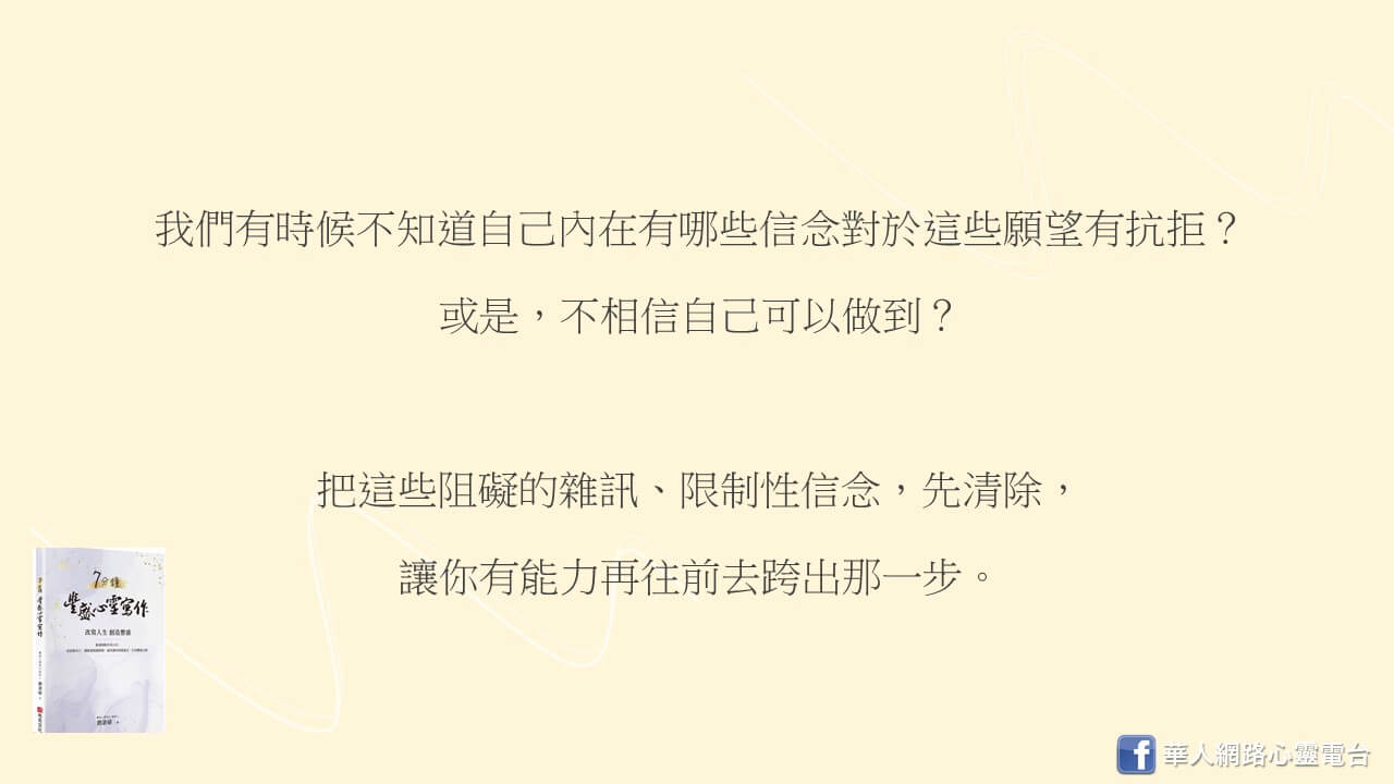 所以,必須先把這些阻礙你的雜訊、限制性的信念,先清除,讓你有能力再往前去跨出那一步。