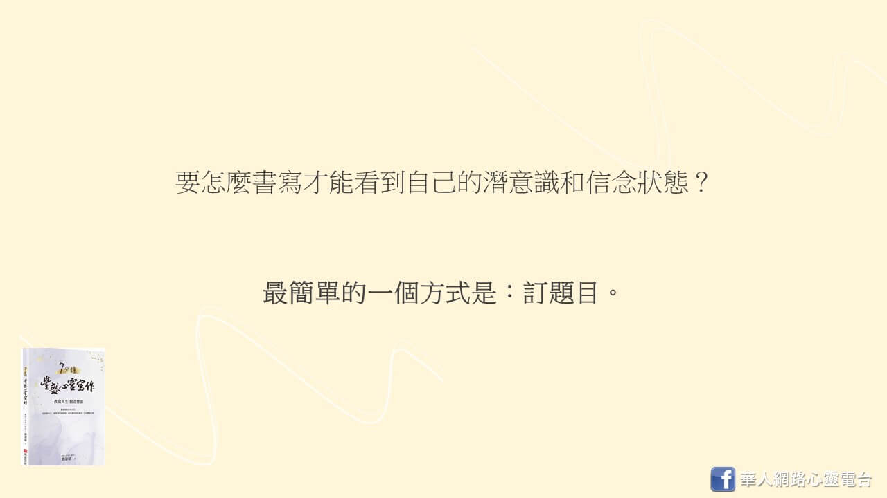 老師有沒有什麼結構化,像書裡面提到的,到底要怎麼書寫才能看到自己的潛意識和信念狀態?