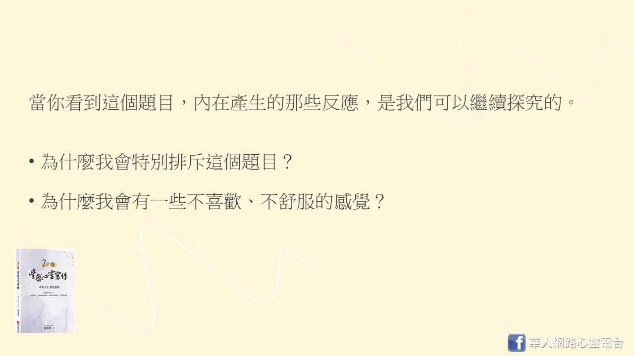 當你看到這個題目,你內在產生的那些反應,是我們可以繼續探究的。
