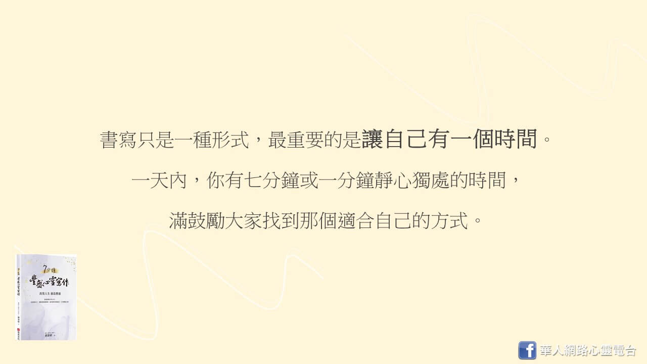 所以我書裡也有提到一件事,在這個書寫的過程裡,至少要連續七天。