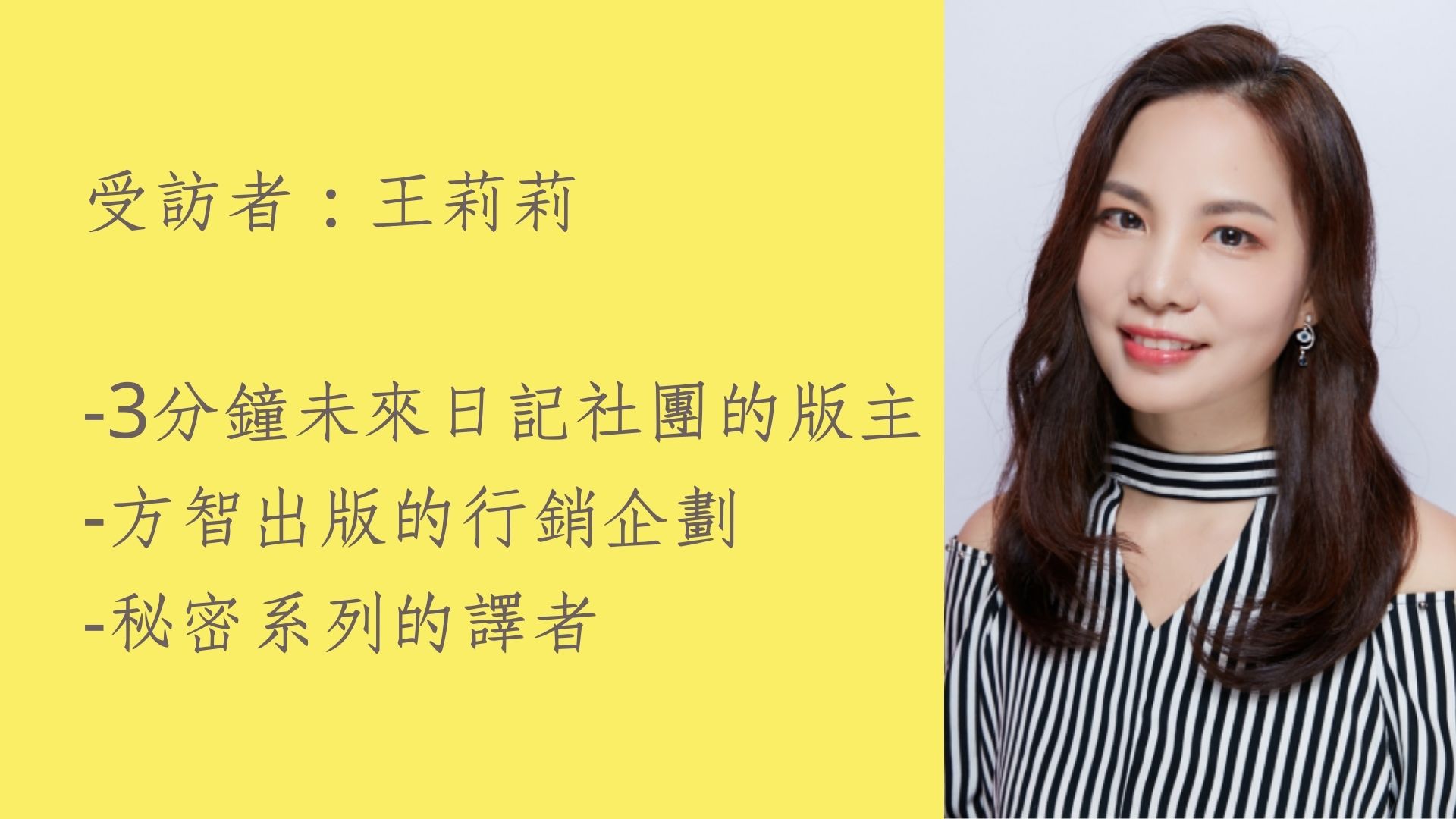 我是3分鐘日記社團的版主,也是方智出版的行銷企劃,也是秘密系列的譯者