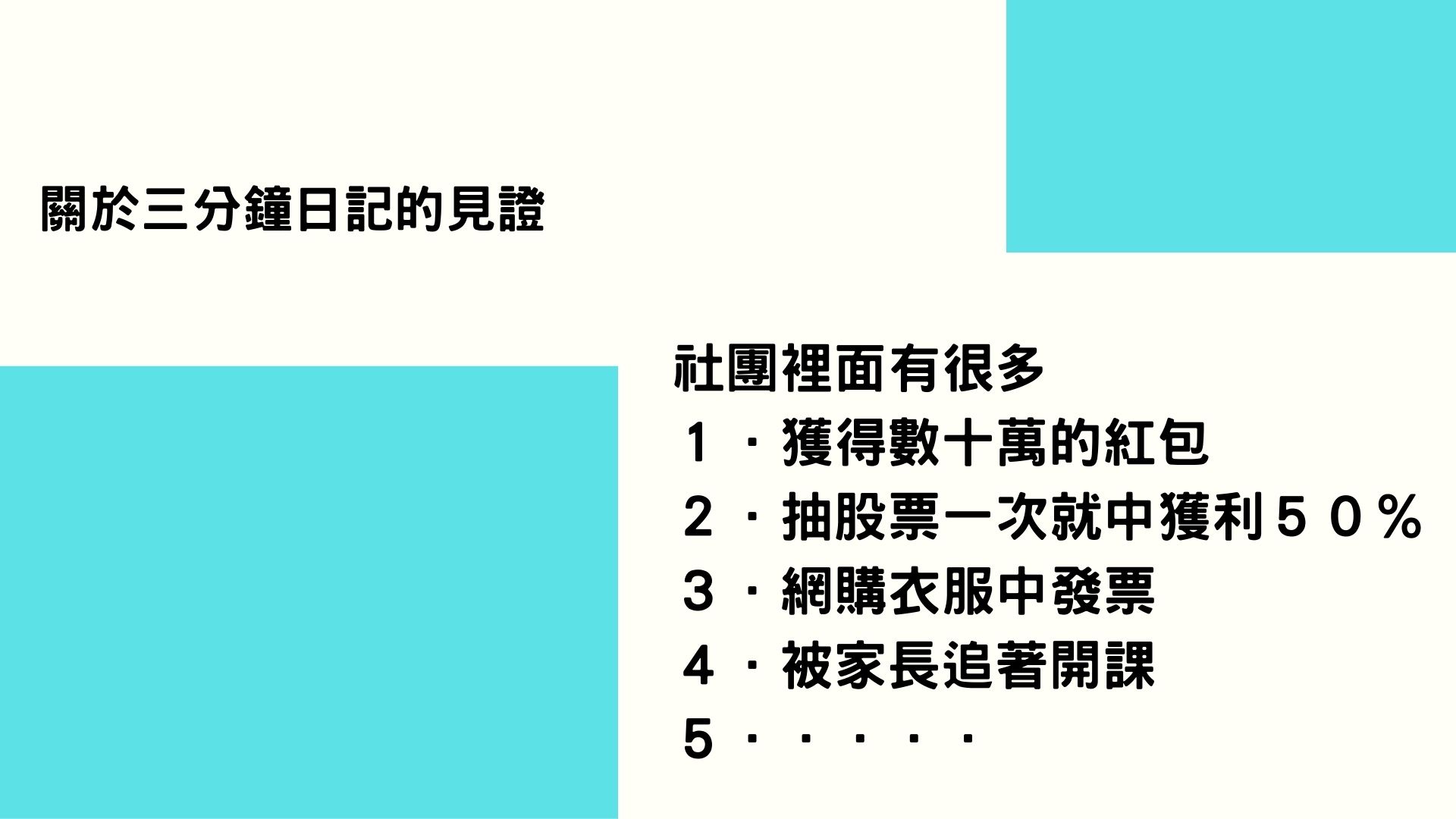 之前有問這個而3分鐘日記到底有什麼見證嗎?我自己有整理一下