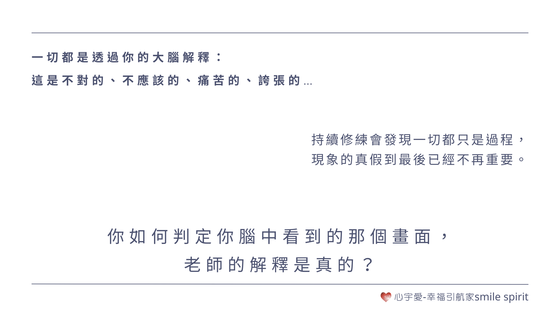 大腦是會騙人的,一切都是透過你的大腦解釋:這是不對的、不應該的、痛苦的、誇張的…