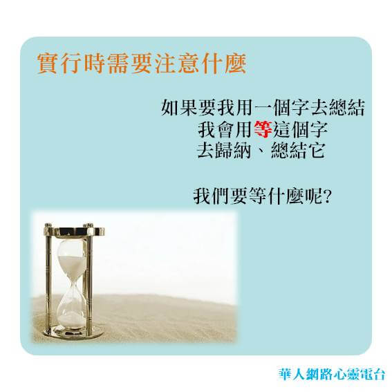 在實行心靈影像的建立的時候,有沒有什麼需要特別注意的事情呢? 如果要我用一個字去總結,我會用等、 等待的等這個字去歸納、總結它。