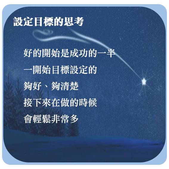 所以呢~ 我們在設定目標的時候,必須要有下面的一些思維。