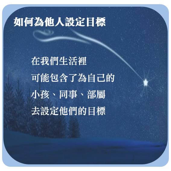 這本書還有一個蠻有意思的主題,叫做怎麼為他人設定目標。這個呢~ 在我們生活裡可能包含了我們為自己的小孩、為自己的同事、部屬去設定他們的目標。