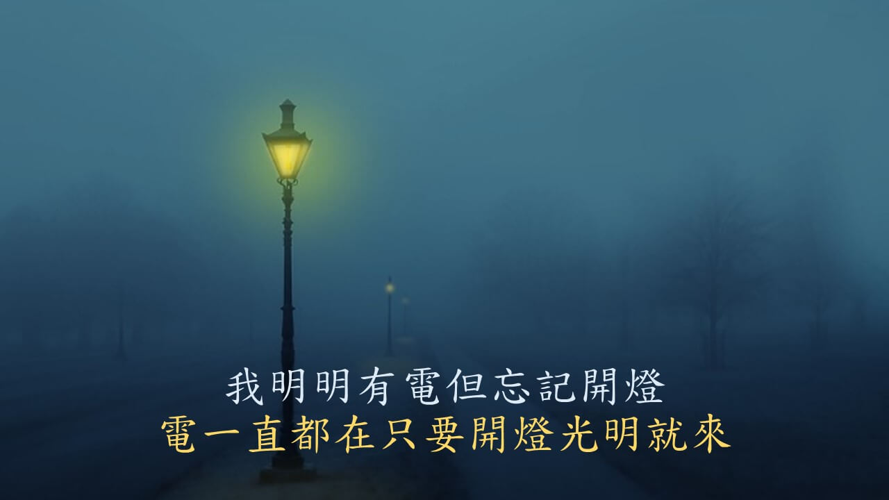 我明明有電但你忘記開燈,電一直都在只要開燈光明就來。