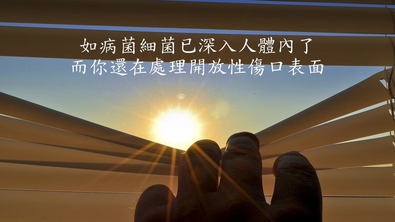 如病菌細菌已深入人體內了,而你還在處理開放性傷口表面,這樣是沒有用的!
