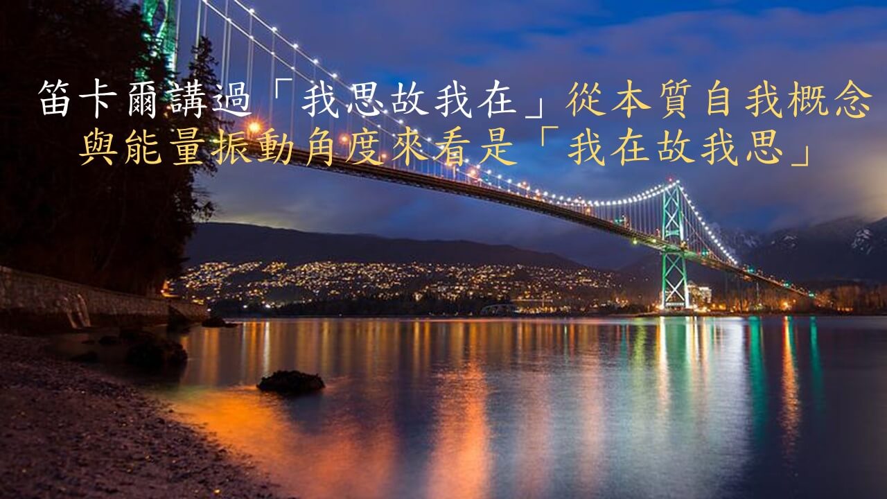 作者提供不一樣觀點,從本質自我概念與能量振動角度來看,是「我在故我思」。