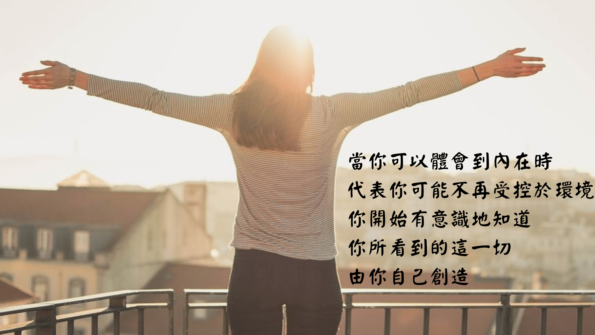 當你可以體會到內在這個部分時,那代表你可能就不會受控於這個環境,由環境來創造你,而是你開始有意識知道,你所看到的這一切,是你創造了這一切。