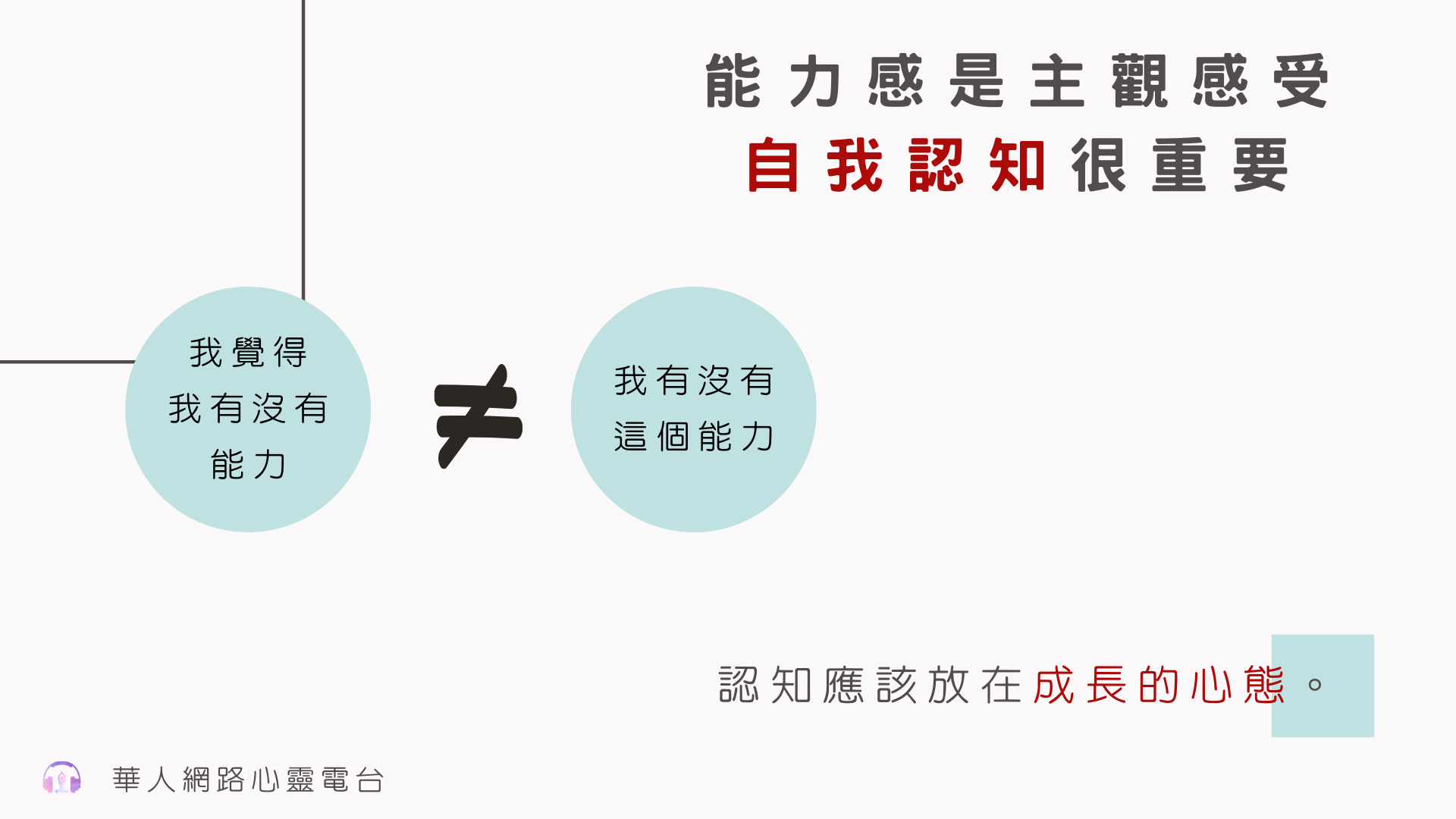 能力感我剛才提到,我覺得他其實是一個主觀的感受,所以我們的認知很重要。