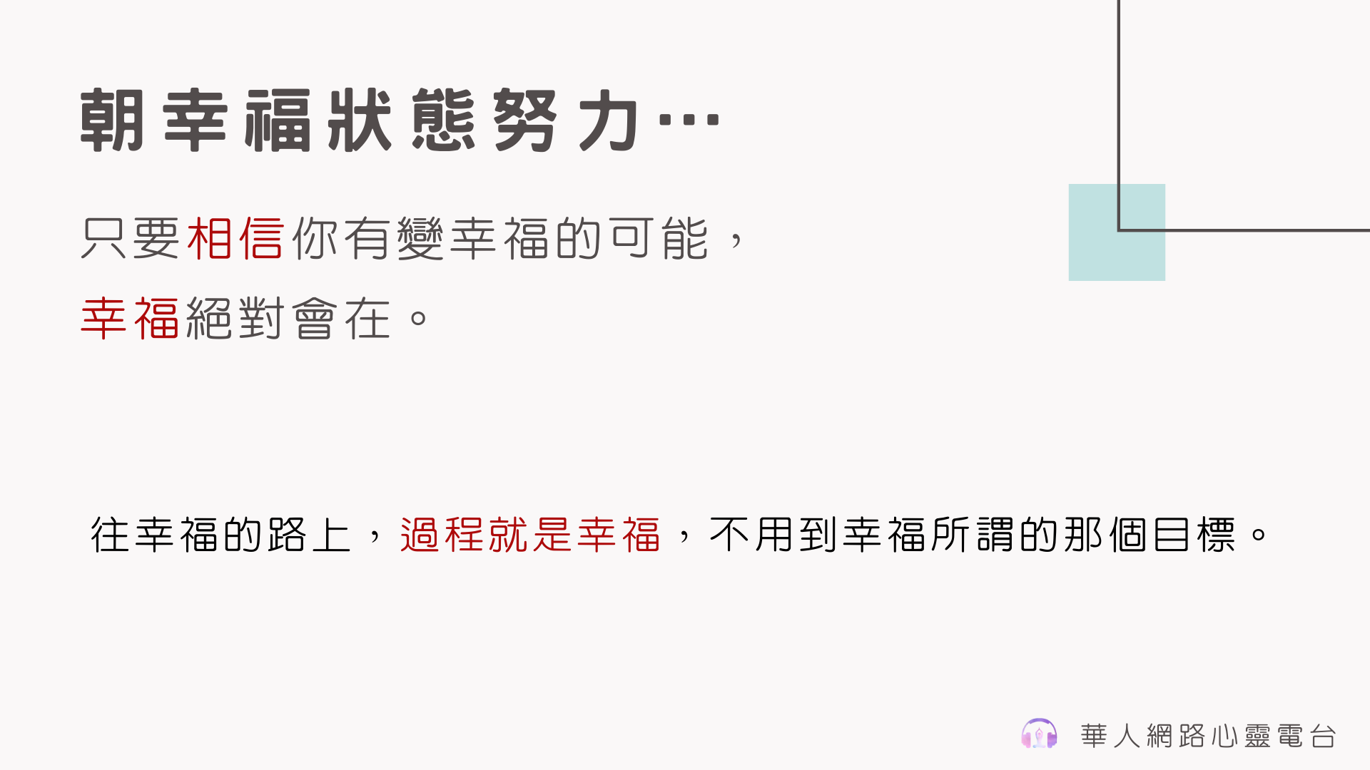 因為我們往幸福的路上,過程就是幸福,不用到幸福所謂的那個目標