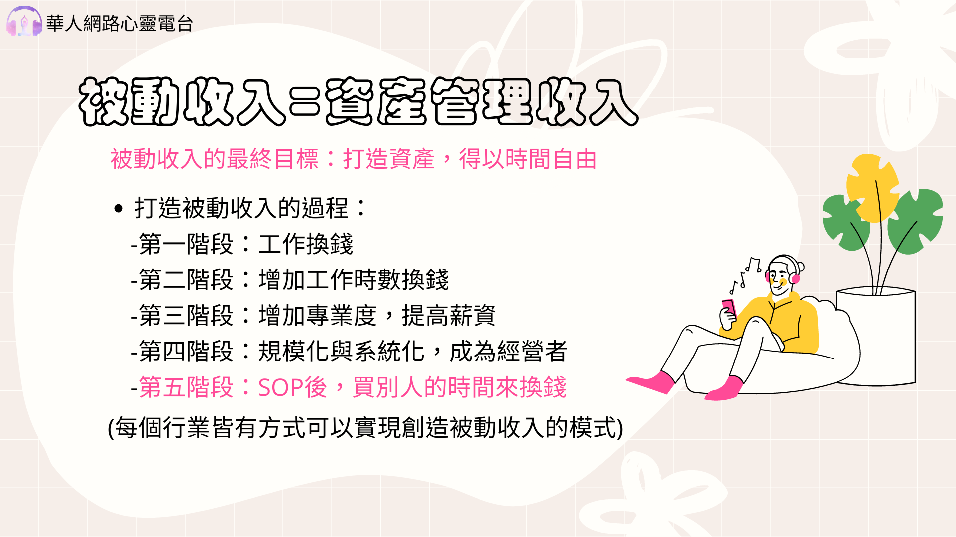 但我在書裡面有明確的寫到,〝被動收入〞其實就是〝資產管理收入〞,