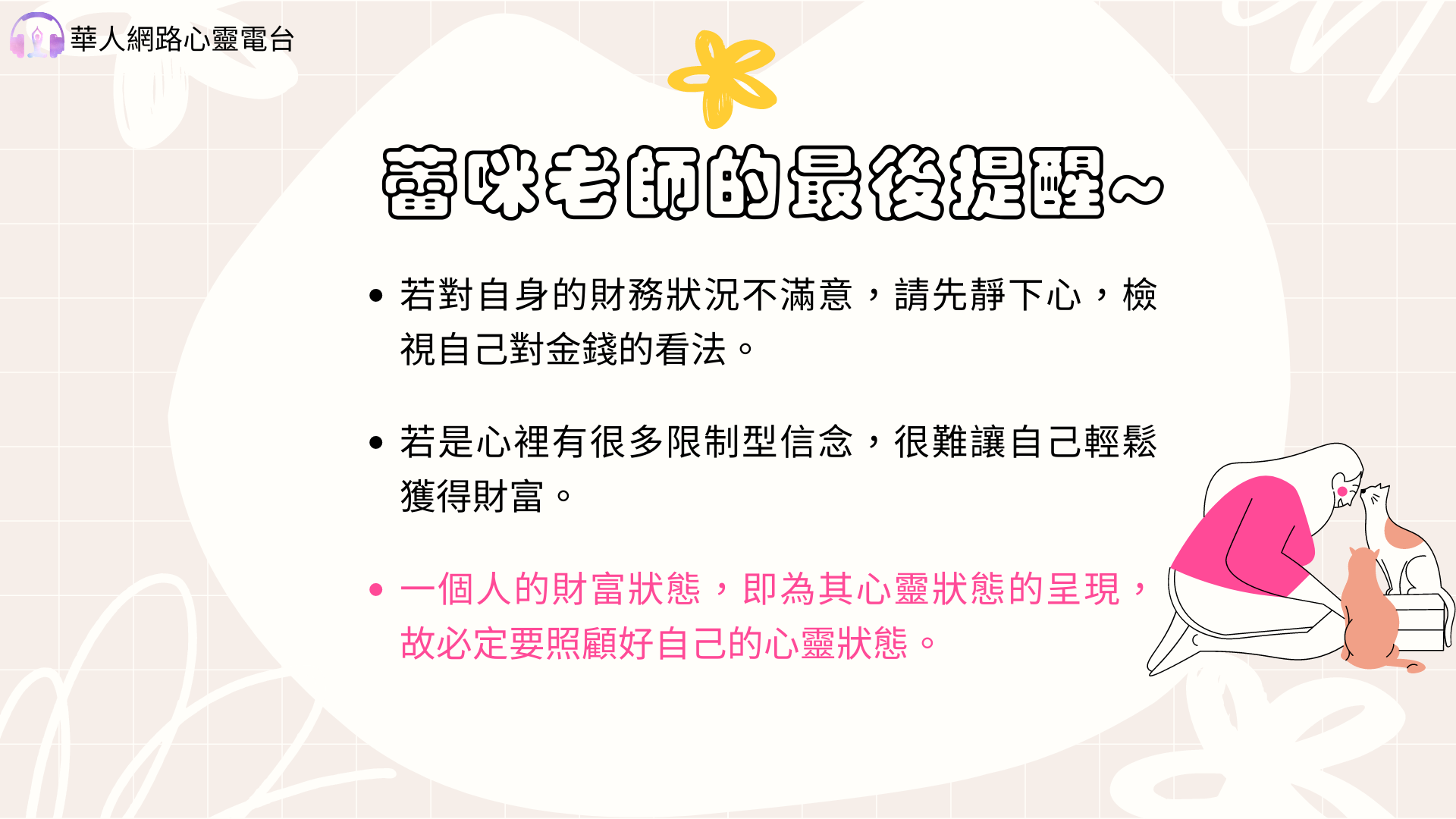 如果你心裡有很多的限制型信念,或者是對金錢有恐懼的話,